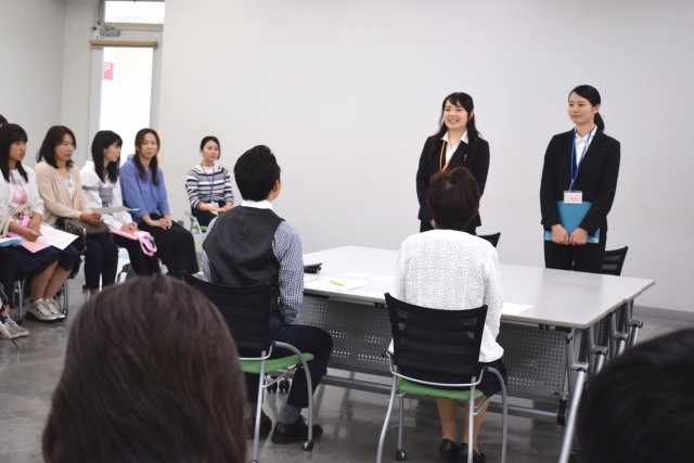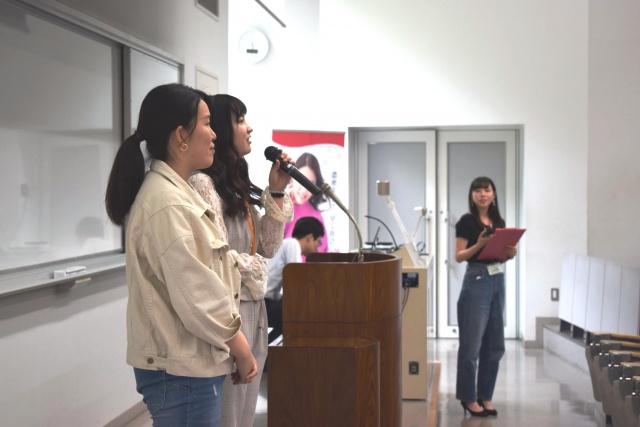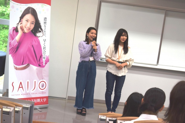 SAIJO生のスピーチでは授業やインターンシップ体験、就職活動などを紹介しました。