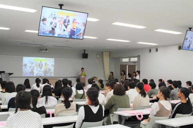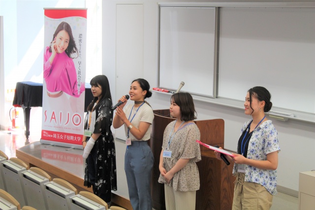 SAIJO生のスピーチでは授業やインターンシップ体験、就職活動などを紹介しました。