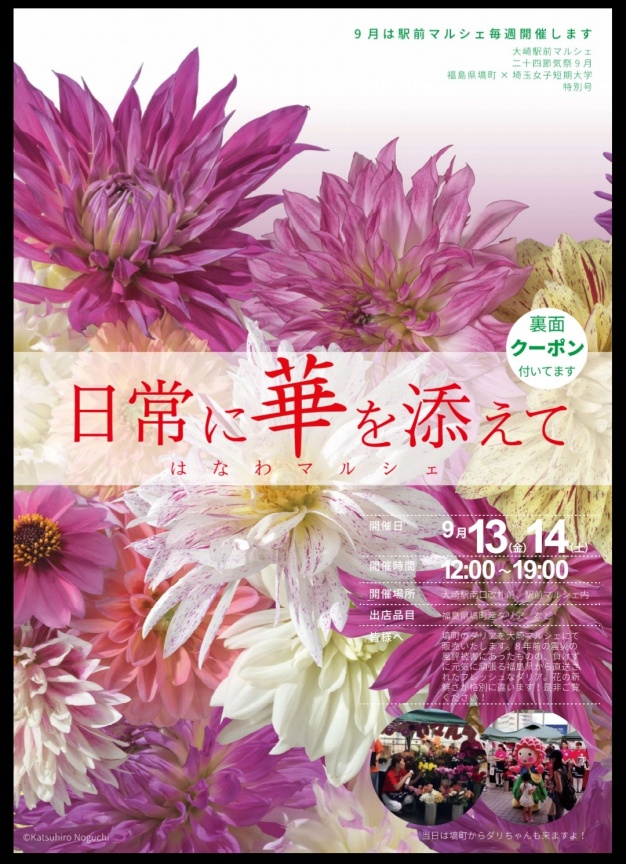 9月13日(金)14日(土)の2日間と15日(日)に、都内で「ダリア マルシェ」を開催します。