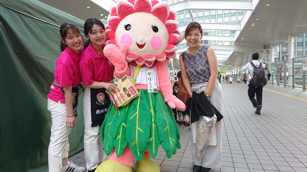 エアライン専門ゼミでは、9月13日~15日までの3日間、東京都内の2ヶ所で福島県塙町のダリア約1500本を販売し、町のPR活動をしました。