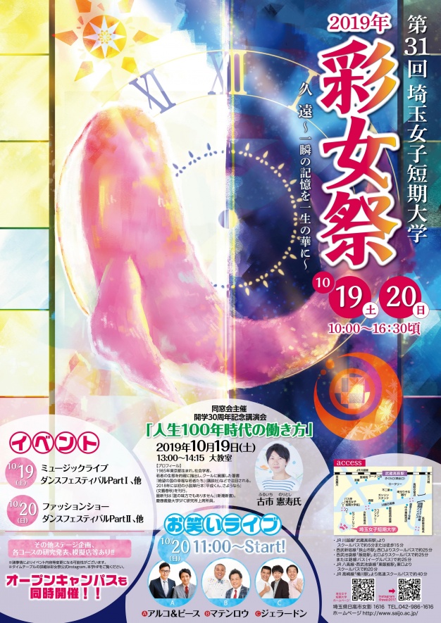 ★第31回彩女祭は、2019年10月19日(土)~ 10月20日(日) に開催致します。今年のスローガンは『第31回 彩女祭 『久遠 ~一瞬の記憶を一生の華に~』です。