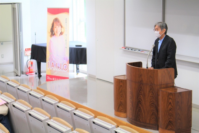 後半のSAIJO生のスピーチでは授業やインターンシップ体験、就職活動などを紹介しました。