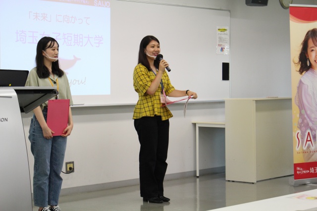 そして後半のSAIJO生スピーチでは授業やインターンシップ体験、就職活動などを紹介しました。