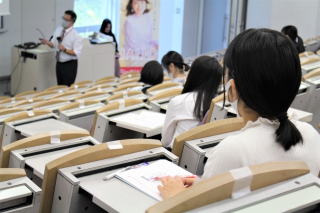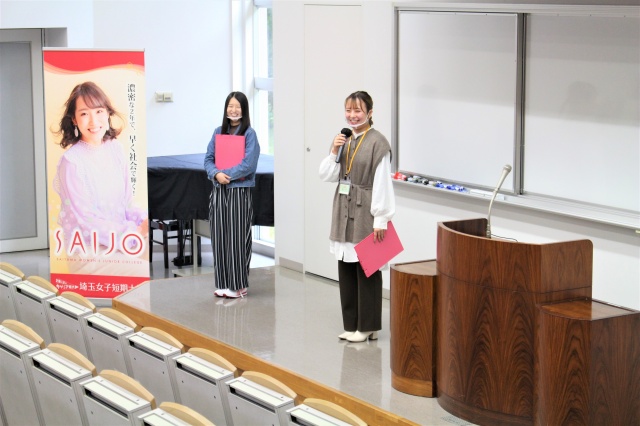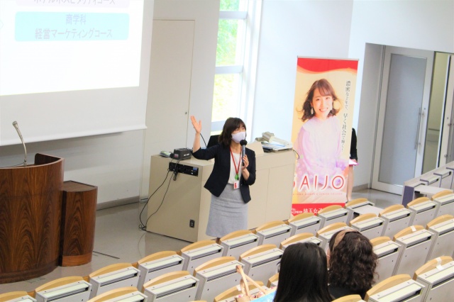そして後半のSAIJO生スピーチでは授業やインターンシップ体験、就職活動などを紹介しました。