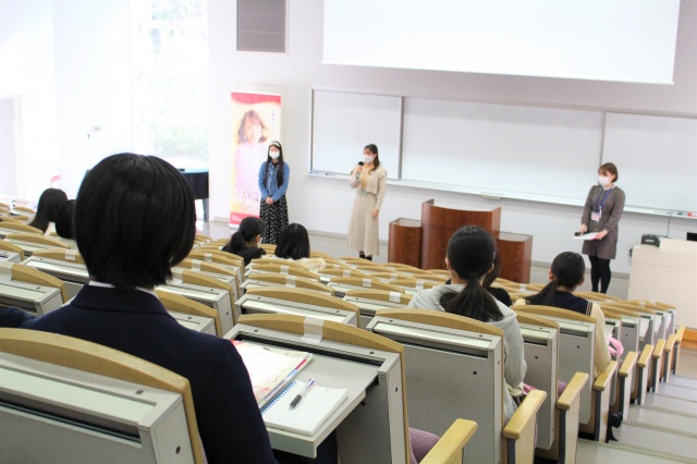 全体説明会では学長の挨拶に続き、教員による学校概要説明、そして在学生によるスピーチが行われました。