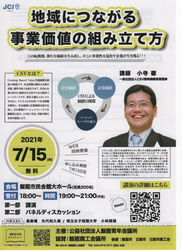 7/15 飯能青年会議所主催のパネルディスカッションに本学教員が登壇します!