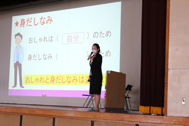 この度は1年生向けのマナー講座ということで、基本的なマナー(挨拶、身だしなみ、言葉遣い)について講義と立ち居振る舞いのワークを行いました。