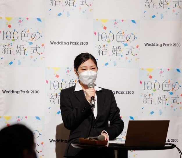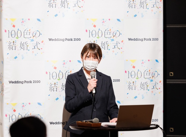 「Wedding Park 2100 ミライケッコンシキ構想」特別展の記者発表席でプレゼンテーションを行いました