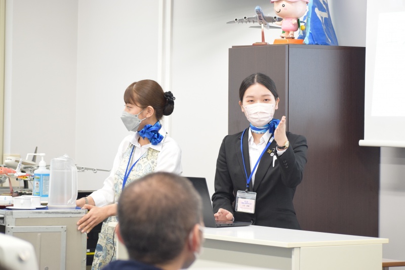 機内空間を楽しめるエアライン教室では、バーチャルフライト&韓国観光を擬似体験しているような演出と空港見学や実習形式の授業の様子、韓国語系資格やオンライン海外留学などSAIJO生目線でそれぞれのコースにまつわるニュースを紹介してくれました。