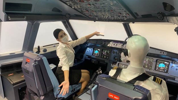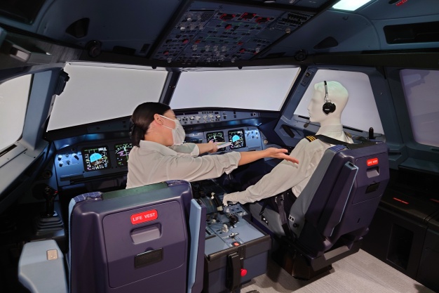 グランドスタッフ、キャビンアテンダント、整備士、カーゴ(貨物)スタッフ、グランドハンドリング、そしてパイロット、全部て6種の訓練施設を見学しながら、現役社員達の真剣な姿を目の当たりにしました。