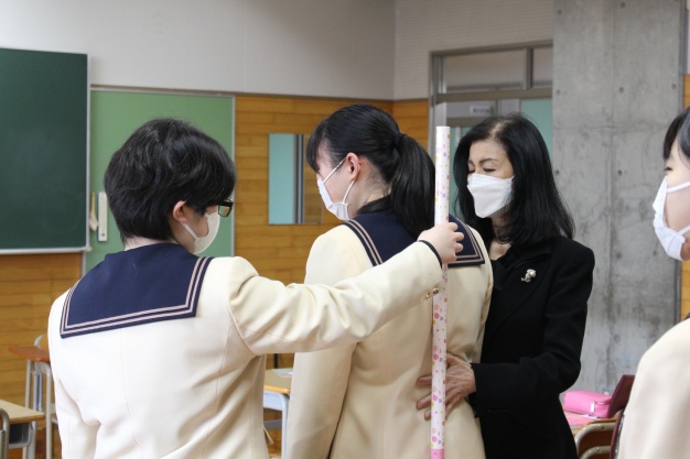 美しい立ち居振る舞いでは本学オリジナルのSAIJO棒を使っての実習を行いました。