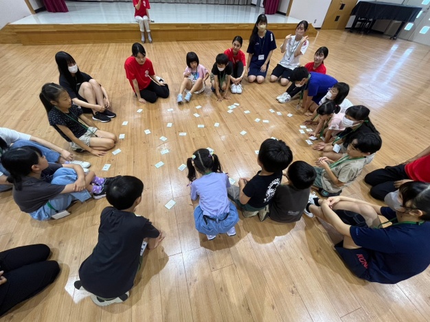 2021年度の専門ゼミで制作した手作りのSDGsカルタを使い、小学生とカルタ大会をしました。このカルタは、当時の学生が実際に工房に和紙を漉(す)きに行き、その和紙を使っています。絵札も手作り、読み札の台詞もテーマをSDGsに絞り、全て全員で考えたものです。