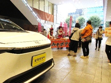 揚げたてのみそポテトやヘルシーなおからマフィンの他、三ツ木専門ゼミがプロデュースした「ハニースイートポテト」も大好評! また、埼玉トヨペット株式会社様のご協力により、みそポテトの保温器に車から給電するという新しい取り組みも成功させることができました。