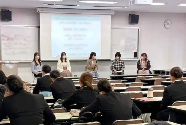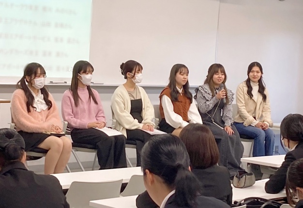 10/16(月)「キャリアデザイン」の授業にて、就職活動を終えた2年生をお呼びし、”内定者懇談会”を開催しました。