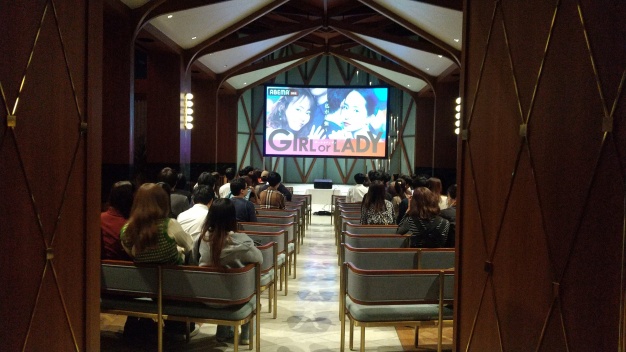 GIRLカクテルは淡いピンクで可憐な、LADYカクテルは真紅の艶やかな色のドリンクでした。ホワイエにはやはりGIRLとLADYをイメージしたブーケが置かれ、来場者はそれを持って自由に撮影することができました。
