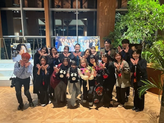最後にスタッフ記念撮影が行われました。学生たちは最前列中央へと促され、恥ずかしくも嬉しさいっぱいの写真となりました。