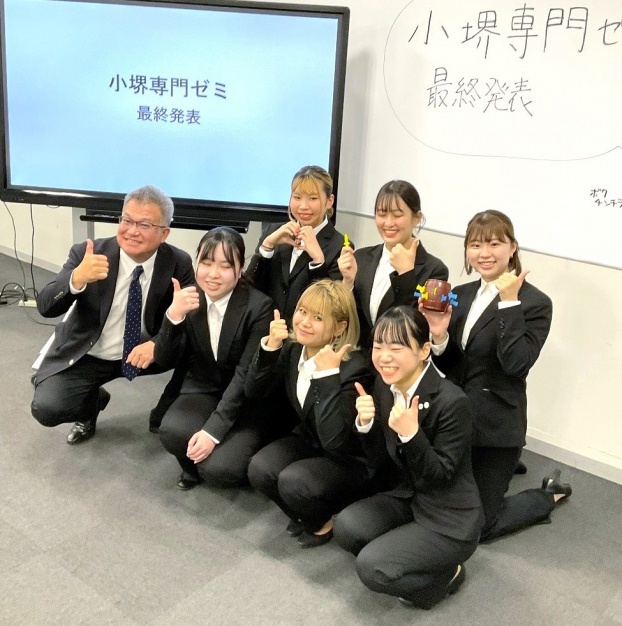2024年1月22日(月)、経営・マーケティングの小堺専門ゼミは1年間の活動を報告する最終プレゼンテーションを行いました!