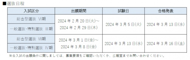 総合型選抜Ⅵ期・Ⅶ期/一般選抜・特別選抜Ⅳ期