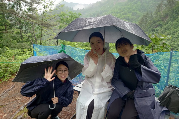 ゼミ生は、長い階段を登った先にある群生地にたどり着いたお客様と、おとめゆりの話をしながら、この花を守るためのヒントを見出すためのヒアリング調査をしました。