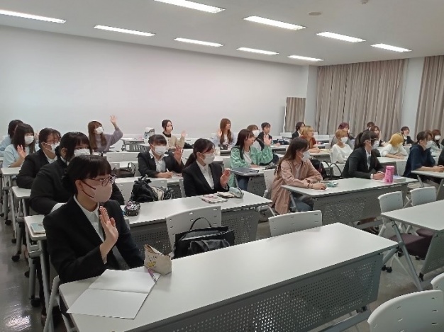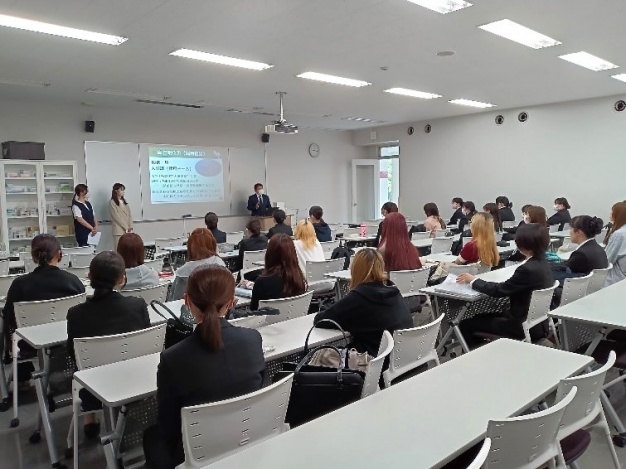 また、稲垣薬局様に就職した卒業生から現在の仕事の様子を伺うことができ、学生にとっては大変励みになったようです。卒業した先輩は今年で13年目とのことで、先輩の笑顔は学生にとって心強い味方に感じられました。
