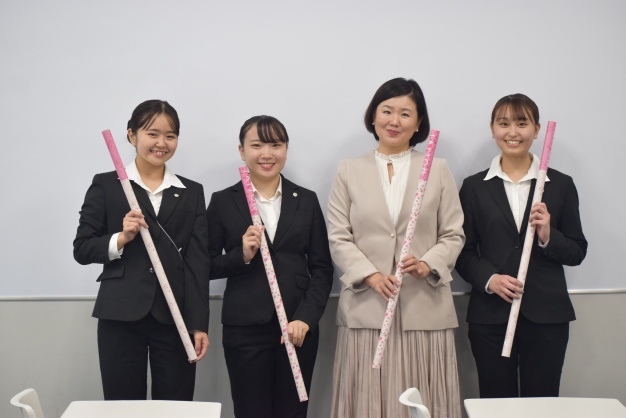 SAIJOの学科・コース関係ない学び<教養・キャリア科目>であるマナー・ホスピタリティの授業では、正しいお辞儀の仕方をレクチャー!