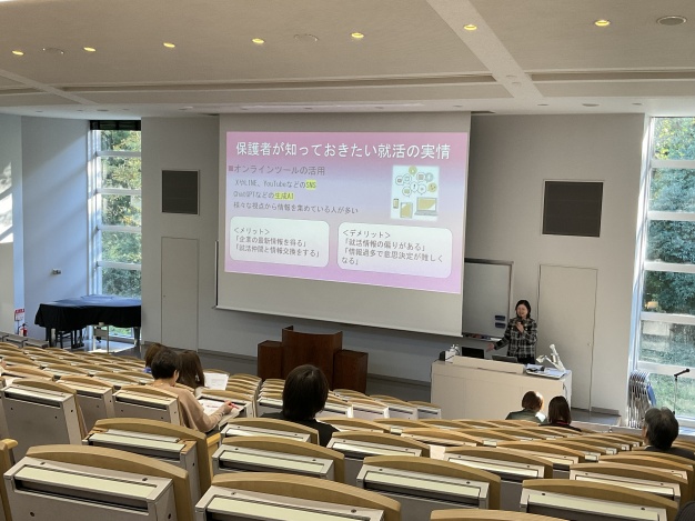 本学のキャリアサポート体制については、現2年生の就職活動状況を中心に各業界の選考スケジュール、2026卒の予想される就職状況、また、本学のキャリア教育、就職支援体制に関する説明をさせていただきました。