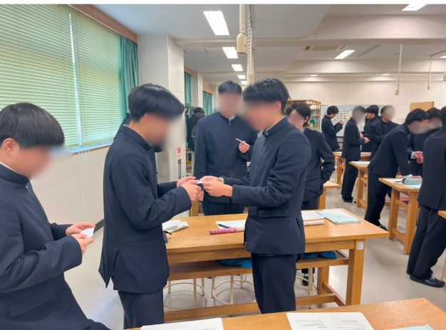 卒業後の進路が決定している高校3年生の男女125名を対象にビジネスマナー講座を行いました。2つの教室に分かれ講師2名が同時進行で実施しました。