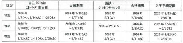 総合型選抜Ⅵ~Ⅷ期 選抜日程