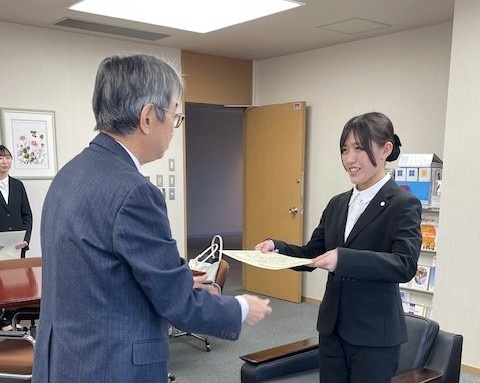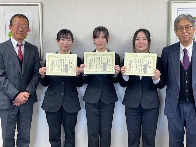 2024年11月に行われた医療秘書教育全国協議会主催「第58回医事コンピュータ技能検定試験3級」の結果において、「成績優秀賞」を受賞された学生に、2025年1月22日(水)学長室にて桾沢学長より表彰状が授与されました。
