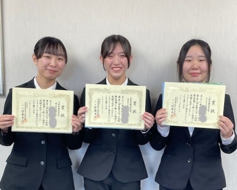 「成績優秀賞」は、協議会の検定委員会合否審査会において、毎回各級の合格者から、総合得点の高い順に内規に基づく推薦を受け、理事会で承認された者へ授与されます。今回本学では3名に表彰状が授与されました。全国の短期大学や専門学校の学生が数多く受験している中で選ばれたということは大変優秀かつ名誉あることです。