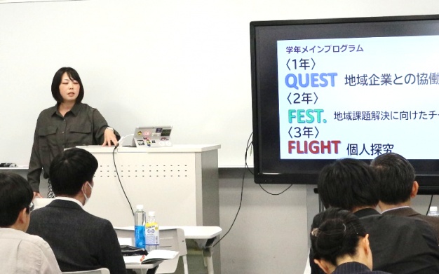 第1部のSAIJOパートでは、学会からも高校生の活動に対して熱視線が注がれていることや三ツ木専門ゼミ(観光・公務)による産学官連携プロジェクトについて話題を提供。第2部の松田先生と田中先生の体験を踏まえたお話は、会場の先生方の深い共感と関心を集め、会場の一体感が一層高まりました。