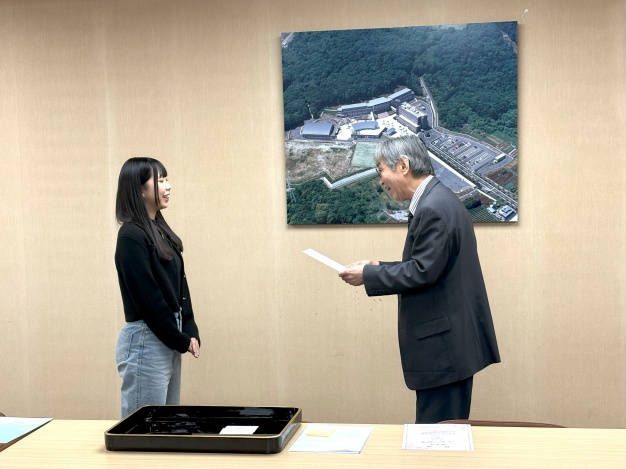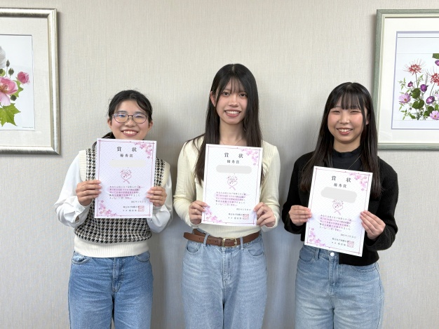 新年度を迎えた本日、桾沢学長より受賞者に表彰状と副賞が贈られました。2年生になったその姿は一層頼もしく見え、キラキラとした笑顔が印象的でした。