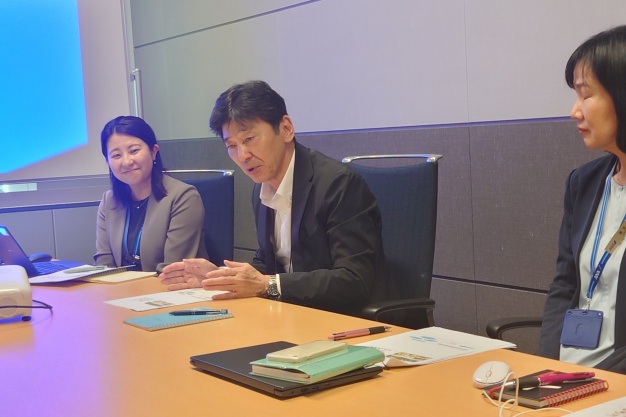 今回、本社訪問には、SAIJOのもう一つのクジラキャラクターである仮称「新クジラちゃん」を伴い、お披露目をしました。