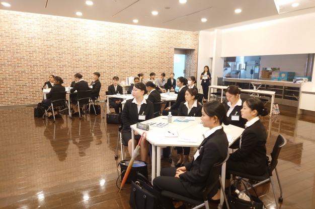 午前中は、まず、ANAグループのしくみや、地上支援という仕事の大切さ、成田空港の未来についての説明をお聞きしました。SAIJOの卒業生社員にもお話を伺うことができました。