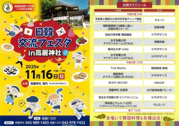 2025年11月16日(日)、 高麗神社で開催される「日韓交流フェスタ in 高麗神社」にSAIJOのK-POPサークル「ピンナヌンソニョ」が出演します!!
