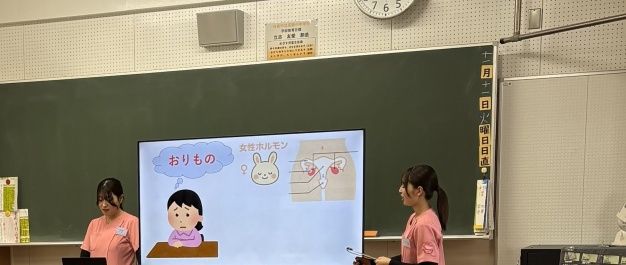 「今回の授業で一番難しかったところは、初経と精通の仕組みについての説明でした」と担当した学生たちは語っています。児童に理解してもらえるよう、数か月前から何度もスライドや説明原稿を作り直し、話し合いを重ねて作成しました。