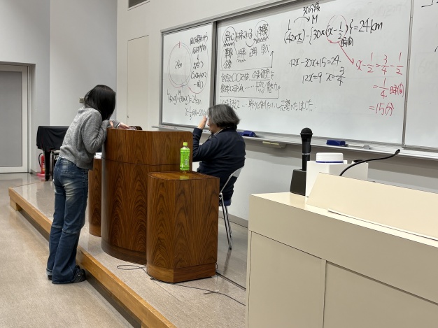 飽きてしまわないように、最初は面白い話を挟み、学生の様子を見ながらとても早いテンポで話を進めて行き、食塩水の解き方に入るまでに1時間余りの時間を有しました。