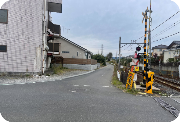 改札を出たら西口に進んでいただき、進んだ先最初に出てくる左手の階段を下りてください。降りた先に銀行がございますので、道なりに右方面に進んでいただき、左手にファミリーマートが見えてきたらそのまま直進します。