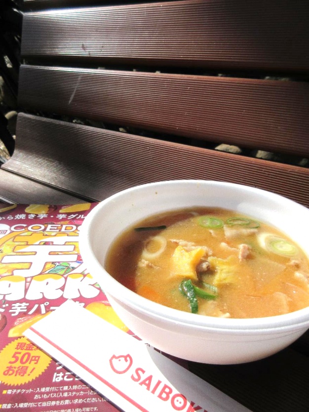 今回のメニューにも多くの連携企業の皆様のお力と情熱が結実しています! 豚肉はSAIJOの地元・日高市の株式会社サイボク様から、新鮮な野菜の数々は同じく日高市の道谷農園様から、そして、全体をまとめる味噌は秩父の老舗、有限会社新井武平商店様からご提供いただきました。そして、主役の干し芋は星形に抜いてトッピング☆ 豚の脂の濃厚な旨味、野菜と味噌のお芋のマイルドな甘さ、そこに「☆いも」の愛らしさが加わって、何ともラブリーで贅沢な豚汁が出来上がりました☆
